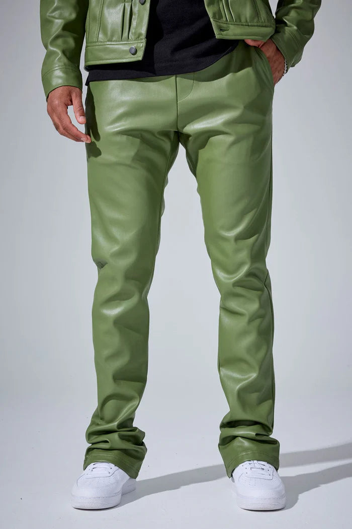 JORDAN CRAIG VEGAN LEATHER STACKED PANT - 8560L - SAGE