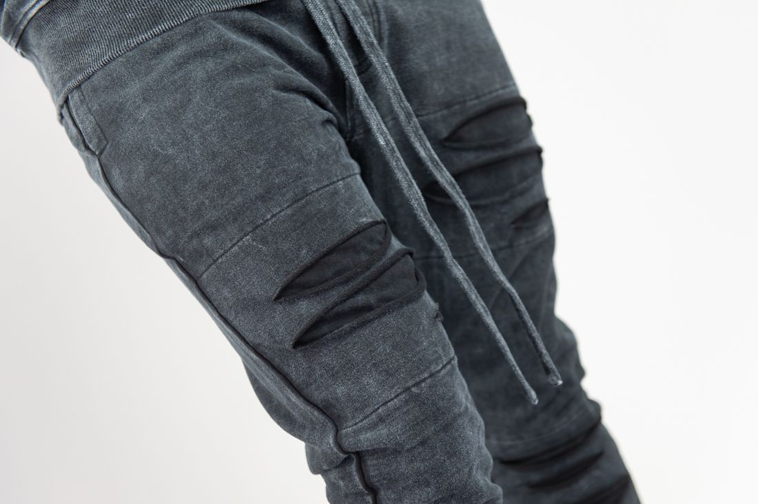 REBEL MIND RIPPED STACKED FLEECE PANT - 100-475 - BLACK