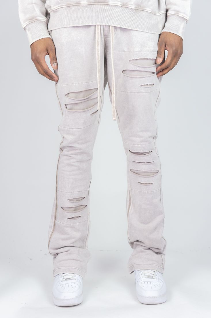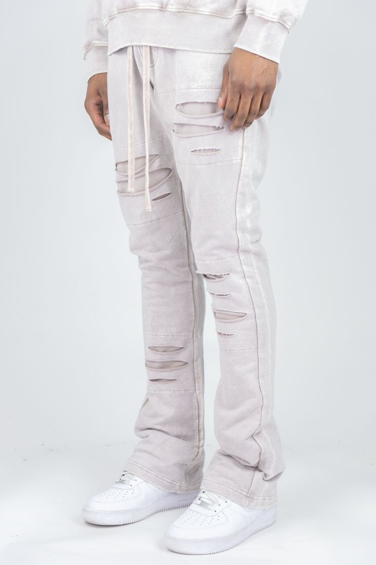 REBEL MIND RIPPED STACKED FLEECE PANT - 100-475 - TAUPE