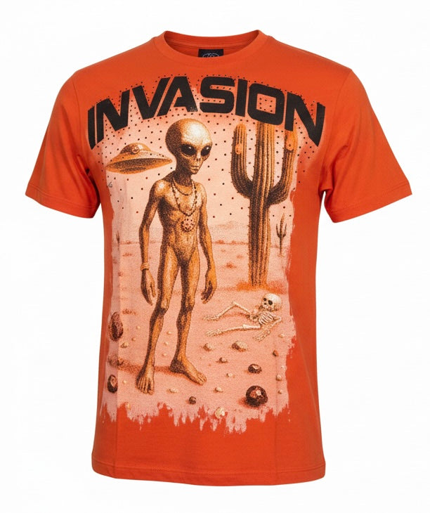 DENIMICITY "INVASION" STONE T-SHIRT - DNM-2506R - ORANGE/BLACK