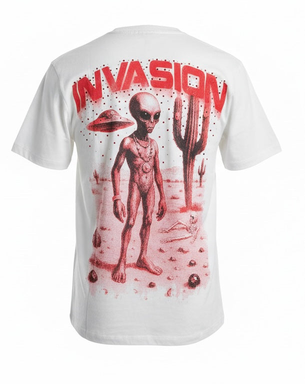 DENIMICITY "INVASION" STONE T-SHIRT - DNM-2506R - WHITE/RED