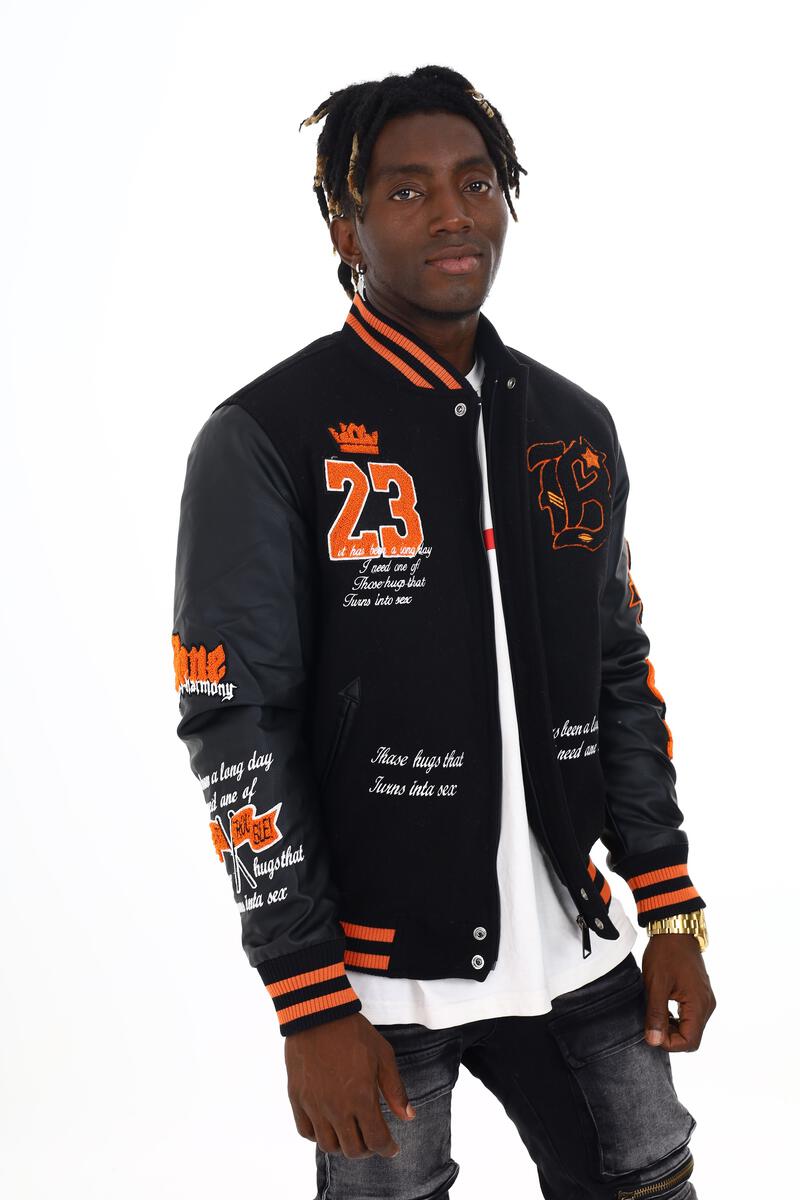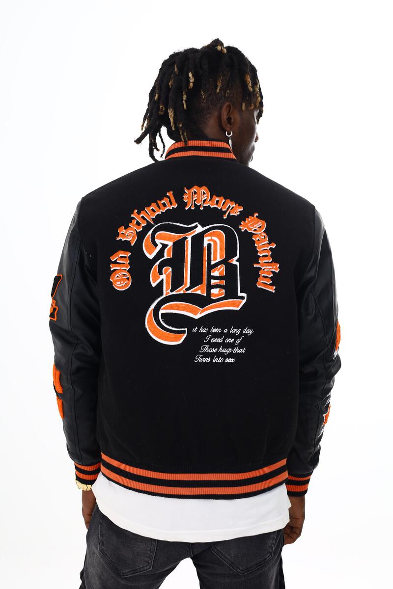 BLACK PHARAOH VARSITY JACKET - BH-006 - BLACK/ORANGE